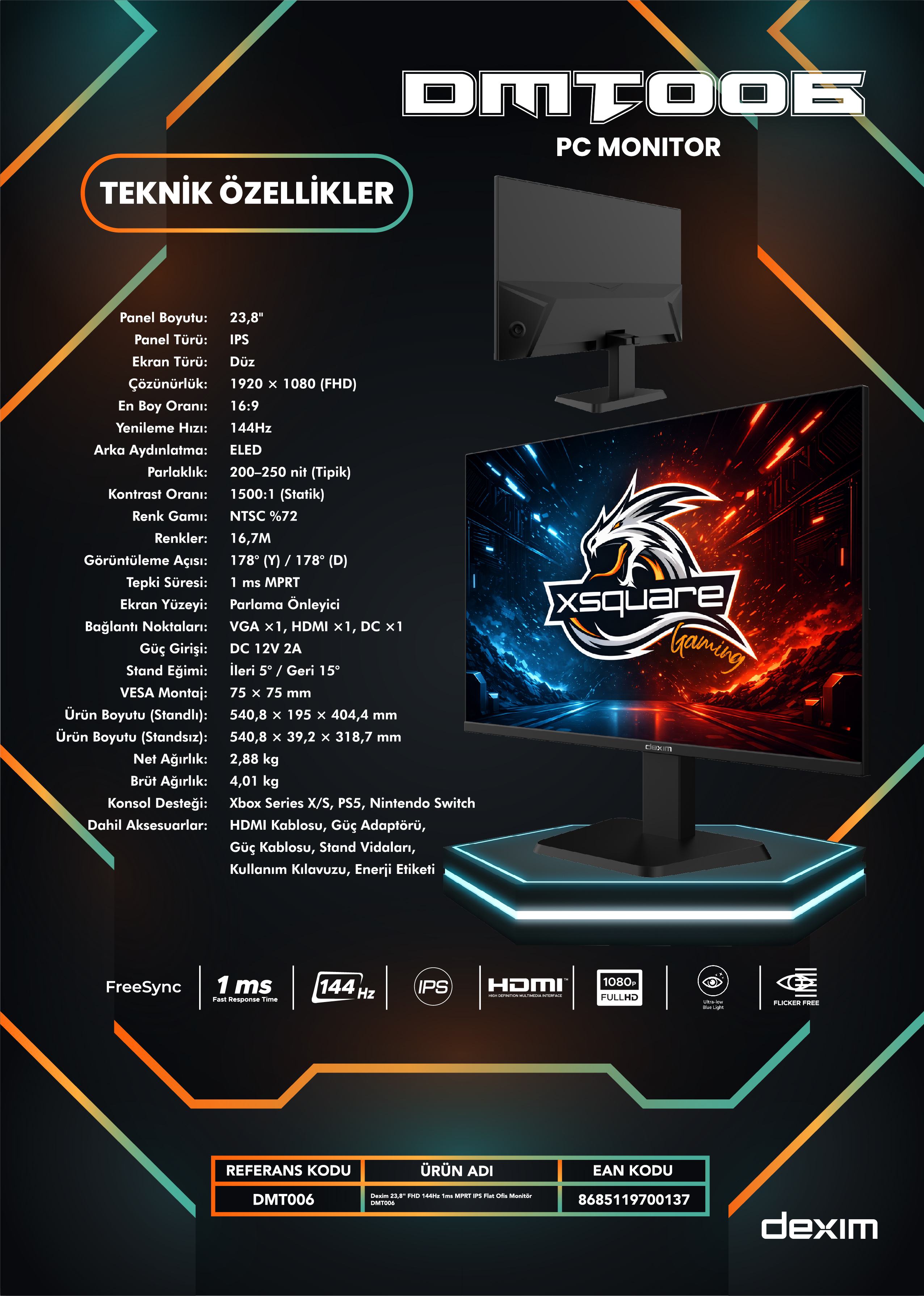 Dexim 23,8'' Fhd 144Hz 1ms Mprt IPS Flat Ofis Monitör - DMT006