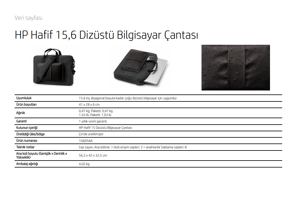 HP 1G6D5AA LightWeight 15.6 inç Notebok, Laptop Çantası - Siyah